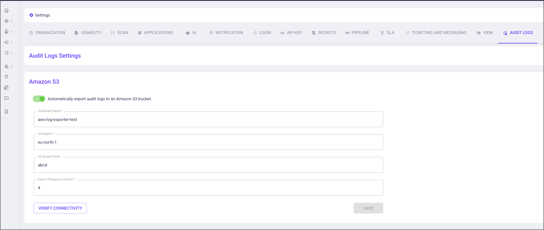 <figure><img src="https://884876233-files.gitbook.io/~/files/v0/b/gitbook-x-prod.appspot.com/o/spaces%2FdK3XMLdV8zRg847RmGmZ%2Fuploads%2Fgit-blob-93340dab7e3c81092edd8a6f761d76f308ed05f2%2Faudit_logs_export_settings.png?alt=media" alt="" width="563"><figcaption></figcaption></figure>