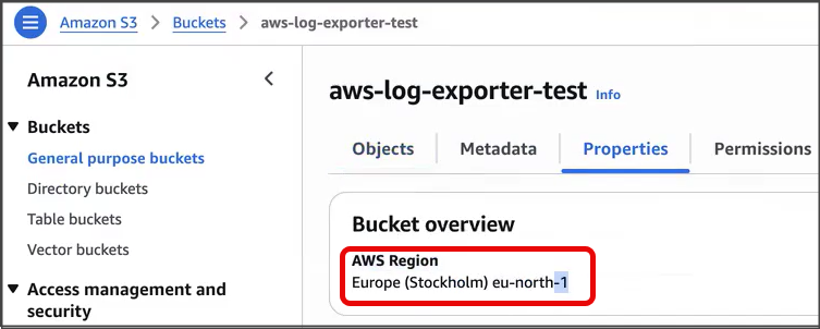 <table><thead><tr><th width="168.16668701171875">Setting</th><th>Description</th></tr></thead><tbody><tr><td>S3 Bucket Name</td><td>The Amazon S3 bucket where audit logs are exported: <strong>Amazon S3 > Buckets > your S3 bucket name</strong>.</td></tr><tr><td>S3 region</td><td>The AWS region where the bucket is located. Check in the <strong>S3 bucket</strong>, in the <strong>Properties</strong> tab.<br><img src="https://884876233-files.gitbook.io/~/files/v0/b/gitbook-x-prod.appspot.com/o/spaces%2FdK3XMLdV8zRg847RmGmZ%2Fuploads%2Fgit-blob-99e8f1fbcec3ea7b7a4385508741c79f5b0b19ce%2Fimage.png?alt=media" alt=""></td></tr><tr><td>S3 bucket prefix (optional)</td><td>Defines the folder in the bucket where audit logs are written. If a prefix is specified, OX stores the exported logs under that folder; if it is left empty, logs can be written anywhere in the bucket based on the permissions granted to the role. When a prefix is provided, OX creates the folder and automatically generates the internal subfolder structure used to store the audit log files.</td></tr><tr><td>Export Frequency</td><td><p>Determines how often audit logs are written to the S3 bucket and can be set from 1 to 24 hours.</p><p>The first export runs at the beginning of the next full hour after configuration is saved, and each export includes all audit log events generated since the previous export.</p><p>If no activity occurs during the interval, the exported file still contains a system entry confirming that the export completed successfully.<br>Default: 1 hour.</p></td></tr></tbody></table>