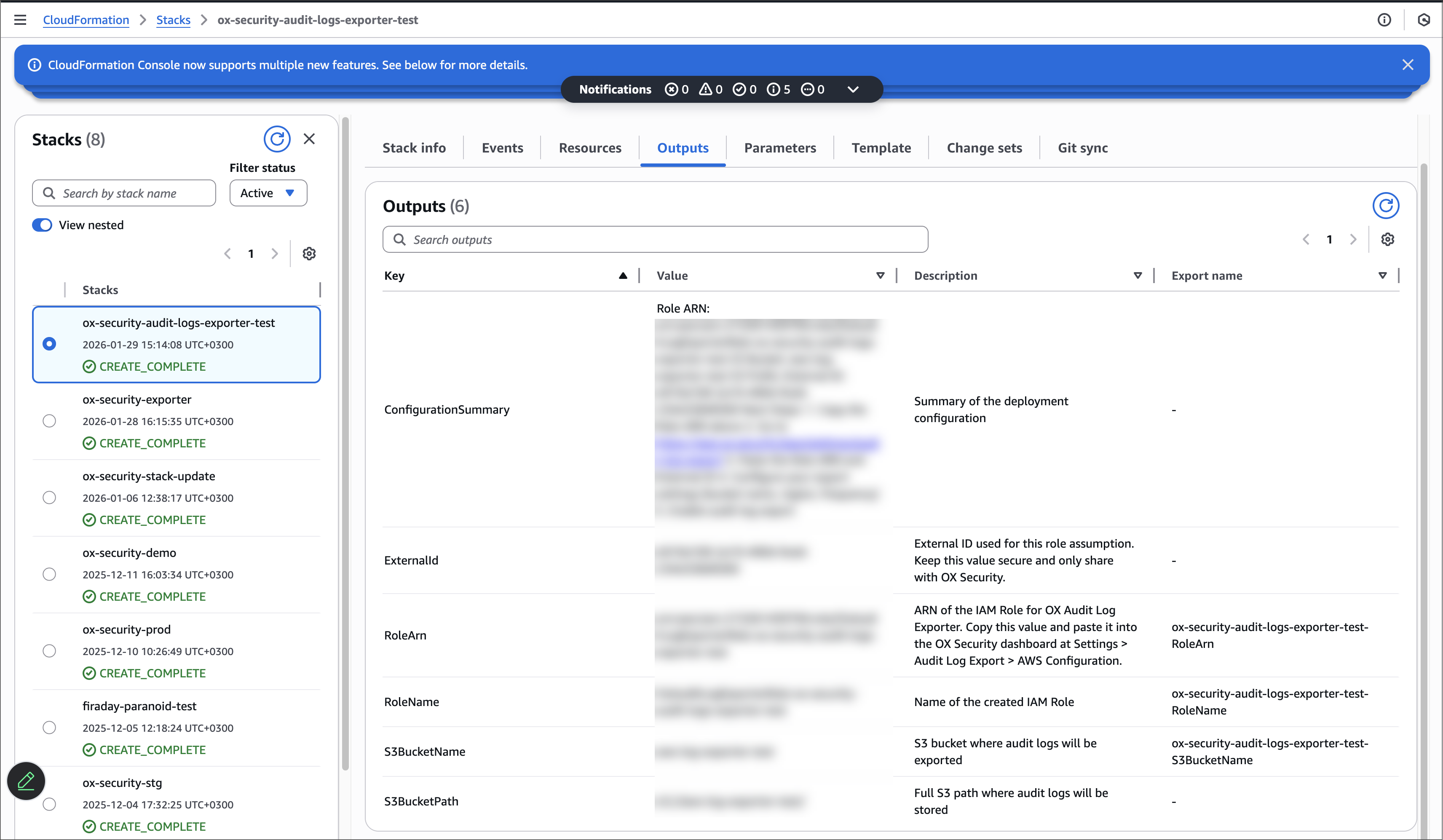 6. Save the value **RoleArn** in a safe location for later use in OX.